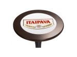 Esse bistrô possui 60 centimetros de diametrô por 100 centimetros de altura. A logomarca é impressa por termofusão em cerâmica. Pintura eletrostática com preta fosco nos pés.