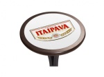 Esse bistrô possui 50 centimetros de diametrô por 100 centimetros de altura. A logomarca é impressa por termofusão em cerâmica. Pintura eletrostática com preta fosco nos pés.